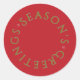 Gift your loved ones with this Traditional, minimalistic Christmas Sticker. With a warm red background and gold typography, highlighted with white faint snow drops around the "Season's Greetings." Invite the warmth of this greeting sticker into your home this festive Christmas.