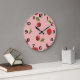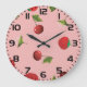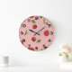 Red Strawberry and Cherry Pattern Pink Fruit Large Clock