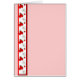 A red and white ribbon against a retro red strawberry pattern from vintage artwork on a blank art card.