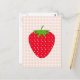 Nice bright red strawberry design, with a green top and a light pink gingham check pattern background.