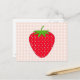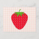 Nice bright red strawberry design, with a green top and a light pink gingham check pattern background.
