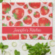 Red Strawberry Pattern With Custom Text Tea Towel