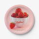 Celebrate in style with this elegant personalised paper plate featuring a vibrant photo by Destei of fresh red strawberries in a white bowl against a blush pink background. Perfect for summer brunch birthdays and special occasions, this plate adds a fresh, festive touch to your table setting.