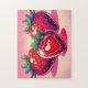 Red Strawberry with Heart cute Drawing - Jigsaw Puzzle