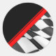 Red Stripe Chequered Flag Racing Sticker. Fun round stickers for race car and stock car drivers. Buy a sticker today and stick them anywhere!