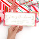 This Christmas gift voucher design features a stripe design. The "Merry Christmas" heading is an image that cannot be edited. All of the other text is fully editable. For more advanced customisation of this design, simply select the "Customise It" button above.