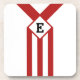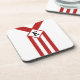 Stylish geometric pattern features bold red stripes on a white background. Three alternating red and white chevrons end at a white diamond outlined with red. It looks like a stylised medal hanging from a ribbon. The diamond contains a customisable monogram. Three red stripes extend from the opposite side of the diamond to the edge of the design. The outer thirds of the pattern are white.