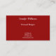 This pretty business card is perfect for any business or occupation. It features a red background with white stripes on the top and bottom of the front. A white stripe runs through the centre. The back is a solid red. All text is customisable.