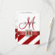 Red and White Monogram Wedding RSVP Cards with a diagonal stripes pattern and a PRINTED red satin ribbon with a PRINTED square diamond brooch on a flat card design. Layout Design by Elke Clarke ©2012. Graphics licensed. Customise with your monogram, names and wedding RSVP text using the prompts or select "customise it" for more editing options. Brides love the embellished invitation designs with jewels and ribbons until they get to the post office and realise that the invitation packets will cost so much more to send to their guests. These invitations and wedding collection accessories have the photo of the satin ribbon and the diamond brooch PRINTED on the flat card. You end up with the elegant effect without the extra cost and work of assembling your invitations. Please contact luxuryweddinginvitations@gmail.com for other colours or help with your design or any matching items you require.