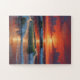 Red Sunset Ocean Seascape Painting Artwork Jigsaw Puzzle