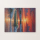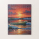 Red Sunset Ocean Seascape Painting Artwork Jigsaw Puzzle