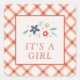 Created to coordinate with the "Sweet Floral" birth announcement collection, this sticker features the phrase "It's a Girl" placed beneath a bouquet of delicate flowers and leaves. The text can be customized, if desired. The design and text is placed over a red, hand-drawn gingham pattern. These pretty stickers are perfect for labeling gifts and party favors, or they can be used to seal the coordinating "Sweet Floral" self-addressed birth announcement envelopes.