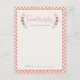 Created to coordinate with the "Sweet Floral" birth announcement collection, this pretty "Wishes for Baby" card features the phrase "Sweet Wishes for Baby (Name)" framed by a wreath of delicate flowers and leaves. There is also space at the bottom for the friend or family member's name. The design and text is placed over a red, hand-drawn gingham pattern. This card is perfect for baby showers, as well as bridal showers and weddings. Other phrase ideas include: "Sweet Wishes for the Bride-to-Be", "Sweet Wishes for the Happy Couple", or "Date Ideas for the Newlyweds".