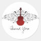 Perfect for a rock and roll themed wedding are these rocker chic Swirls Guitar Thank You Stickers in dark red. This unique design features a striped guitar and flanked by cascades of elegant swirl flourishes. Easy to customise, simply add your wedding details in the text fields provided. Click on the "Customise It" button to find additional personalisation options.