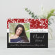 Graduation Invitations with photo and Classy Red, Black and White Design with flowers and flowing swirly vines. Cute, chic, delicate and feminine style for any girl or female graduate. Show your personal style with this beautiful photo grad invite. Great as a graduation announcement or graduation party invitation.