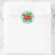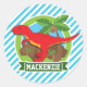 Red T-Rex Dinosaur; Blue & White Stripes Classic Round Sticker
