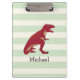 Red T-Rex on Pastel Green Stripes Clipboard