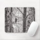 A black and white photograph of a hawk perched on a branch in a group of trees. Image Copyright ©2024 Kimberly J Tilley. zazzle.com/store/developingnature