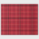 This is a roll of holiday wrapping paper in classic festive red with a modern and simple black and beige tartan plaid pattern.