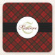Red tartan Christmas plaid winter pattern Monogram Square Paper Coaster