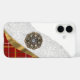 A pretty red tartan and white lace design with a diamond jewel centre piece easily change the white background colour.