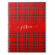 Modern 3 ring binder with a red tartan plaid design and a white scripted name. Personalize with your name on the cover and text on the spine.