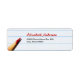 A handwritten style return address label with a bright red coloured teacher's correcting pencil laying on a white sheet of lined school paper. Personalise this scholastic design by signing your name and address. Perfect to send letters home to students and parents.