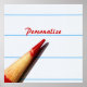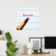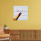 A handwritten style poster with a bright red coloured teacher's correcting pencil laying on a white sheet of lined school paper. Personalise this scholastic design by signing your name. Perfect for writers, teachers, or students in middle school or junior high.