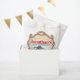 Celebrate your little one's big day with these one-of-a-kind, red, teal blue vintage circus birthday favour bags featuring hand drawn elephant artwork and vintage frame. Personalise with your own custom message, guest of honour's name and birthday age.