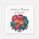 Red Teal Orange Peony Blooms Gold Trim Wedding Napkin