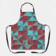A vibrant geometric quilt of red, teal, purple, and gray triangles—bold symmetry meets tactile artistry