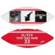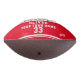 Custom Red Team Name Player Number 2 Photo Football. Modern sporty custom football with player's name, team name, player's number and year on one panel and 2 custom photos on the second panel - add your text and photos. Sporty design with stripes. You can change any text on the football or erase it. A perfect gift for a football player, teammate, coach. Great keepsake to remember the favourite sport.