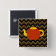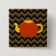 Red Teapot on Brown Zigzags. 15 Cm Square Badge