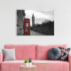 Canvas print of a selective colour photo of a red telephone box in the city centre of London, UK with the Big Ben in the background on Remembrance Day.