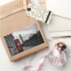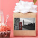 Rectangular photo sticker of a selective colour photo of a red telephone box in the city centre of London, UK with the Big Ben in the background on Remembrance Day.