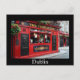 Postcard of the famous red pub with the hanging flowers baskets in Temple Bar district in Dublin, the capital of Ireland with a black border and the text 'Dublin'.