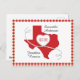 A casual and fun way to share your joy well in advance of your big day. Send these Texas save the date cards out to all your family and friends. Design features a large state shape with a heart made from a white ribbon with black dashes. Space inside the heart for your date and at the bottom for your location. Bordered with a coordinating gingham pattern. Perfect mix of classy and rustic in case you haven't decided what style you're going with! Available in red, blue, and yellow. Matching products available.