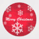 Red textured design with white and off white snowflakes Christmas sticker. The design features a red texture background with snowflakes and the text "Merry Christmas".