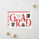 This graduation announcement card features a striking design with the word "GRAD" in large, classic serif letters, creating a bold visual impact. Each letter is carefully placed to feature three personal photos, allowing you to showcase cherished moments. The elegant typography contrasts beautifully against the crisp white background, while the personalised text adds a refined touch to celebrate the graduate’s milestone. Back includes a zigzag pattern coloured to match the front. Perfect for sharing with family and friends to mark this proud achievement! Available in standard school colours of black, red, orange, green, blue, purple, maroon, and burnt orange or edit to match your school colours.