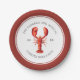 Personalised Lobster themed food paper plates for your next Lobster Bake Party or seafood event. It features a watercolor styled illustration of a crimson lobster. Surrounding this are spots for your unique event information on this tableware.