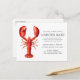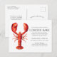 Personalised crimson red Lobster themed postcard invites for your next Lobster Bake Party or seafood event. It features a watercolor styled illustration of a red lobster. Surrounding this are spots for your unique event information.