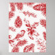 Red Toile Christmas Bird and Pine Poster