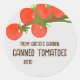 A product label decorated with cherry tomatoes hand-illustrated with watercolor and informative text for you to edit with your personal/business details.