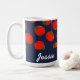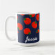 Red tomatoes on blue coffee mug