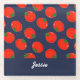 Add your name on this red tomatoes on blue background pattern design.