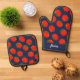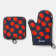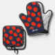 Red tomatoes on blue oven mitt & pot holder set