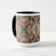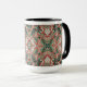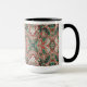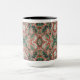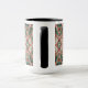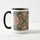 This is a mug with a black accent that contains a red tone tile foliage design.