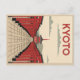 Minimalist retro of Kyoto with rows of iconic red torii gates and temple backdrop.