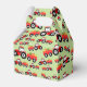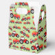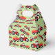 A cute illustration of a red tractor truck towing a wagon filled with fruit and vegetables. The farm fruit and vegetables on the trailer include watermelon, pumpkin, potatoes and corn. Perfect for boys and girls who love tractors, trucks, heavy machinery, farming or just love playing with toy trucks. Ideal birthday favour box. Matching birthday party invitation, decor and favours can be viewed in this design's collection.