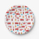 Red Transport Fire Truck Engine Brigade Pattern Paper Plate
